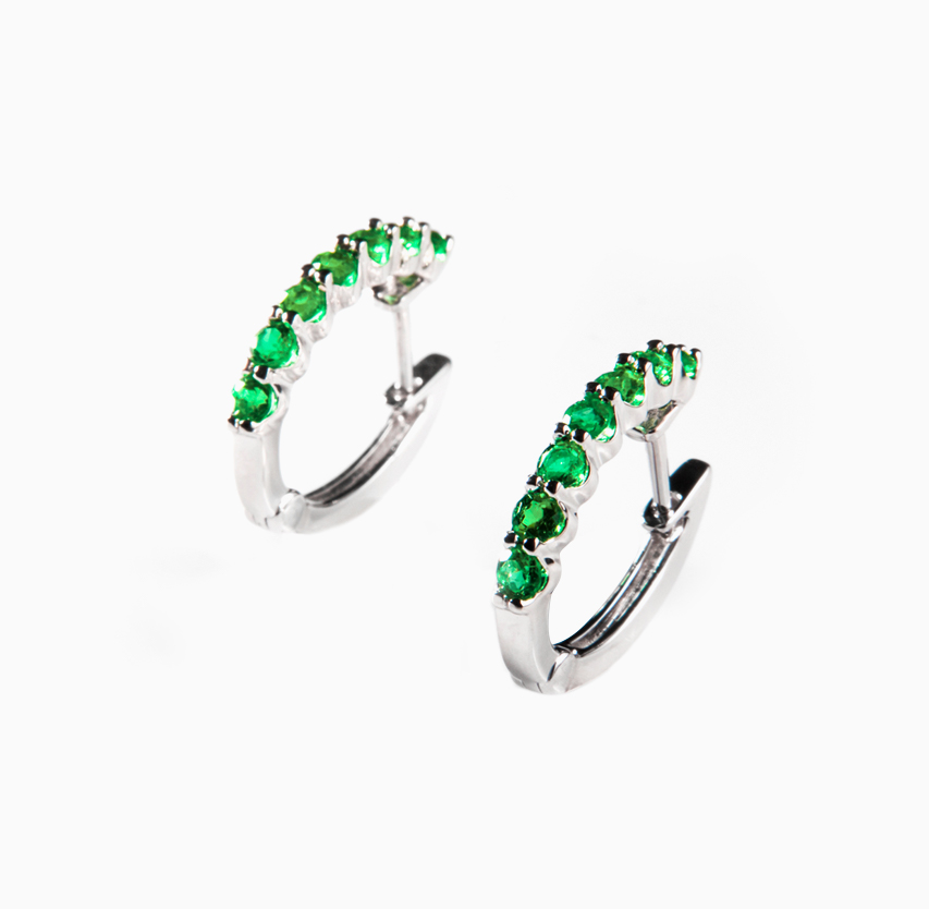 Tu grandeza se ve reflejada en estos aretes en oro y esmeraldas.