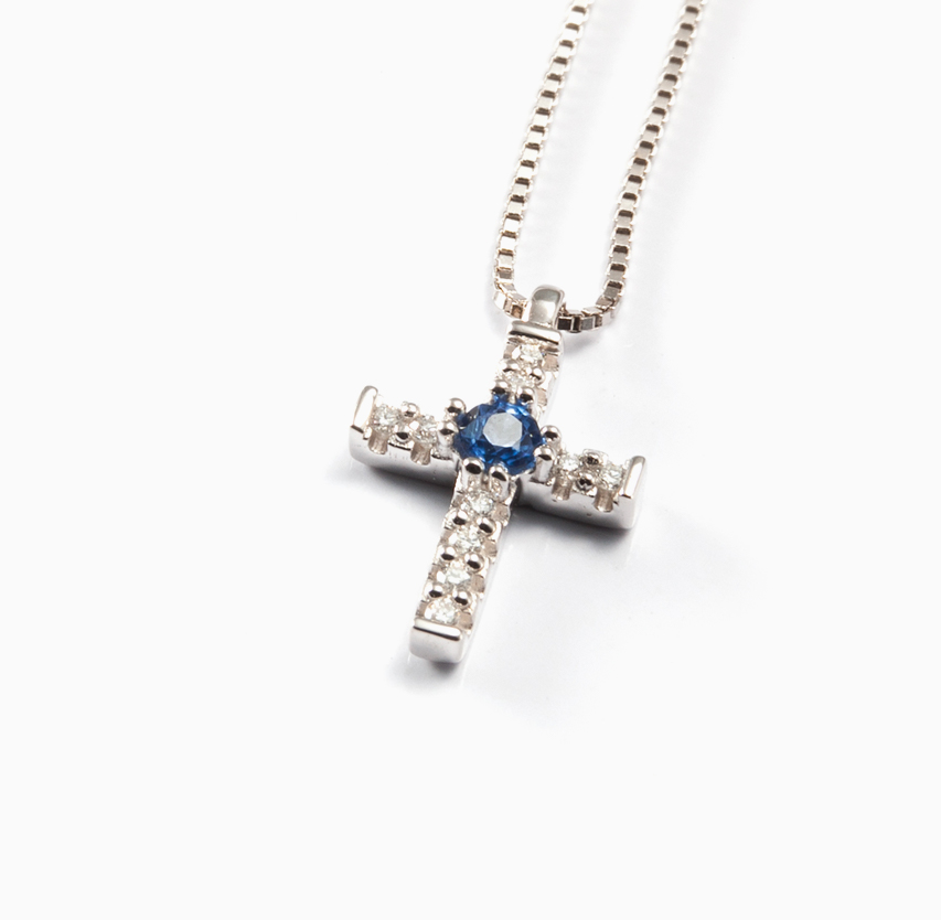 Encuentra razones para creer, inspírate con este dije en oro, diamantes y zafiro.