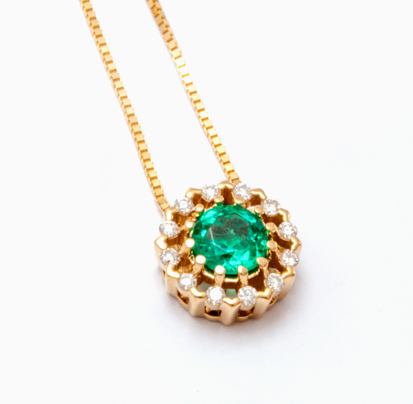 Distinción, es tu sello característico al igual que la elegancia que caracteriza este collar en oro, diamantes y esmeraldas.