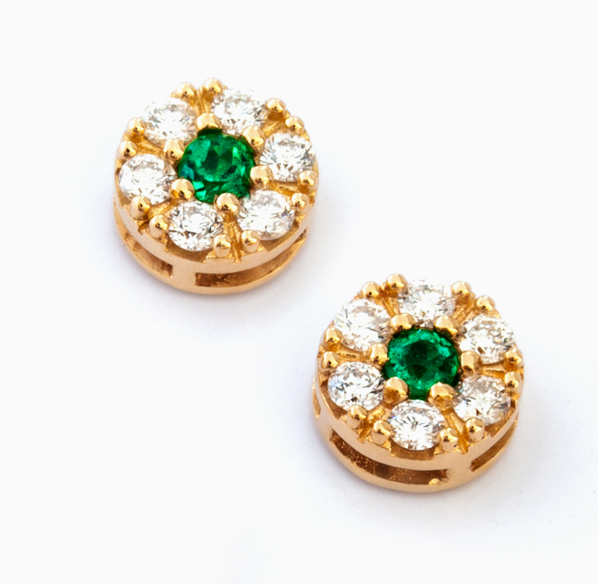 Unos aretes en oro, diamantes y esmeraldas para resaltar la belleza y estilo que te caracterizan.