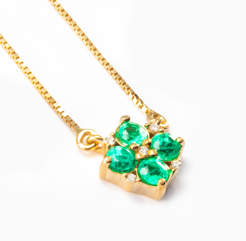 Disfruta del toque de brillo y sofisticación que te aporta este collar en oro, diamantes y esmeraldas.