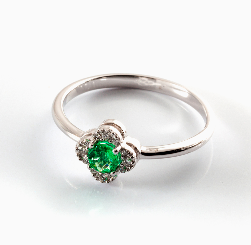La gracia hace parte de ti, lúcela con este anillo en oro, diamantes y esmeraldas.